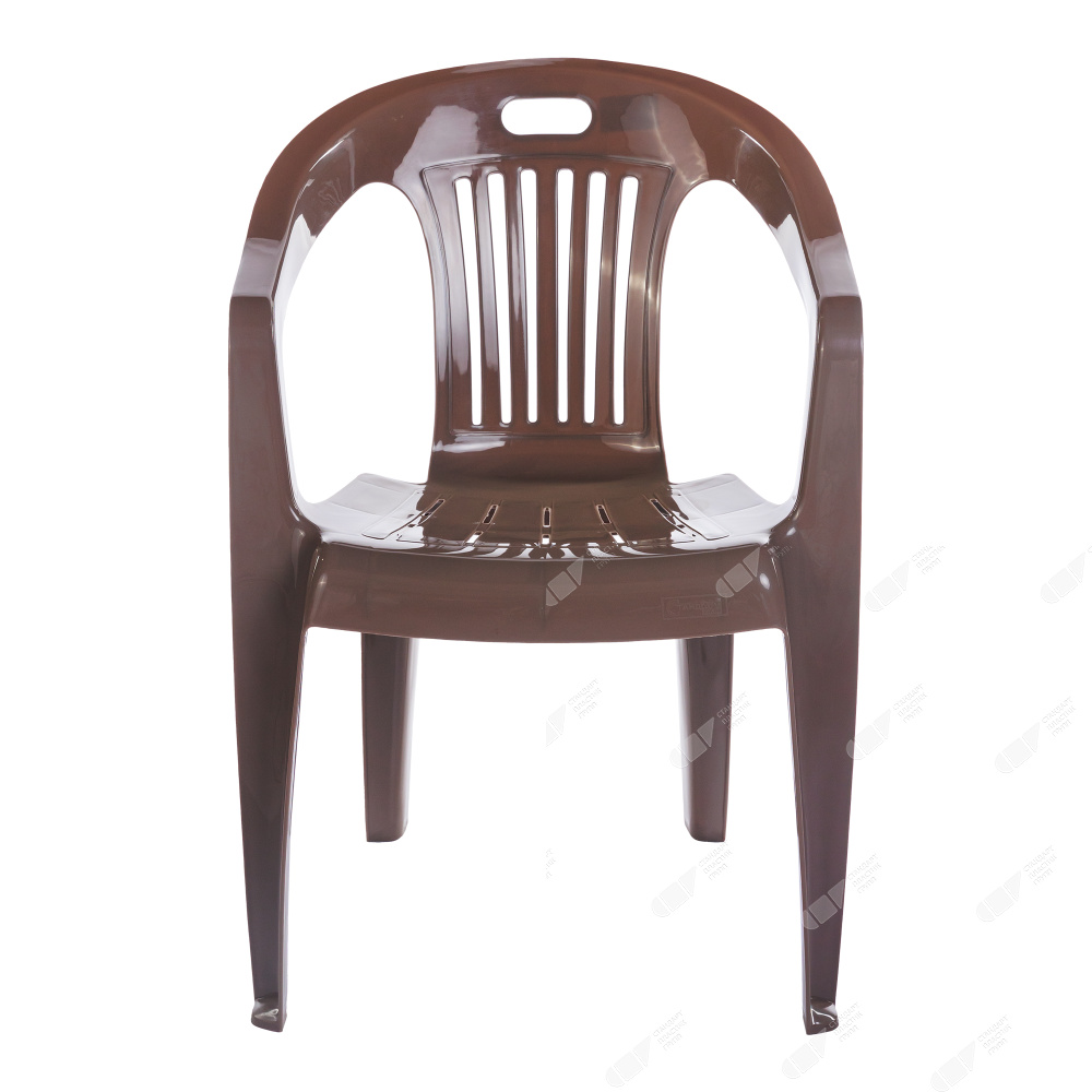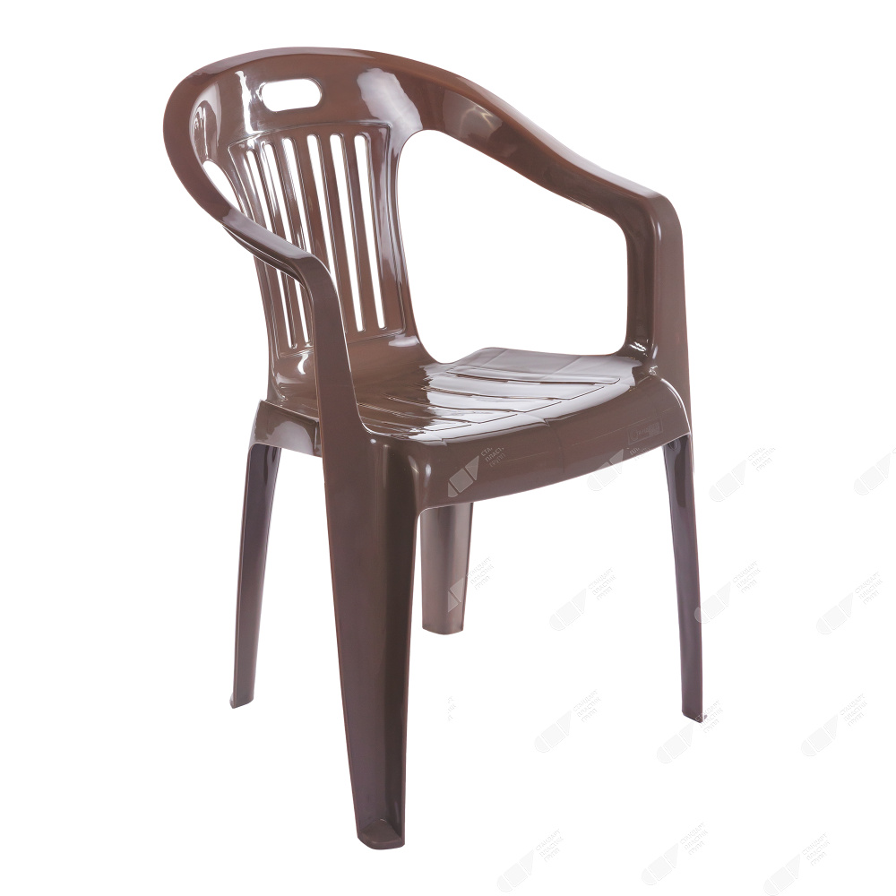 Кресло Комфорт выполнено в традиционном стиле из прочного пластика. Выдерживает нагрузку до 100 кг при весе изделия 2 кг. Высокая спинка и подлокотники делают кресло удобным и комфортным. Спинка вентилируемая, со специальной прорезью для перемещения кресла. Легко моется и компактно складируется в виде стопки. Предназначено для использования внутри помещения или на открытом воздухе. Идеально подходит для дачи, загородного дома, кафе, праздников, для отдыха на природе.