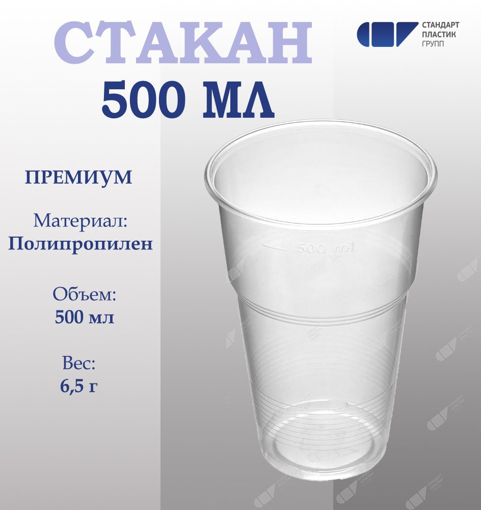 Стаканы одноразовые, объемом 500 мл. Изготовлены из безопасного прозрачного пищевого пропилена. Предназначены для холодных и для горячих напитков (до+75 °С). Все продукты, в такой таре, сохраняют свои вкусовые и питательные свойства при любой температуре. В них можно подавать: соки и газированные напитки, пиво, десерты (мороженое, взбитые сливки, коктейли). Данный набор стаканов отлично подойдет для отдыха на природе, пикников, а так же для использования в офисах, заведениях общепита и фаст-фуда. Несмотря на большой объем, одноразовые стаканы легко вставляются один в другой и занимают минимум пространства. После использования стаканы не нужно мыть. Достаточно просто собрать их в мешок и выкинуть в мусорный бак. Или отправить на переработку. Небольшой вес и минимальный объем удобны для транспортировки и хранения одноразовой посуды. Серия Премиум обладает высокой плотностью и прочностью, стаканы не деформируются при транспортировке.