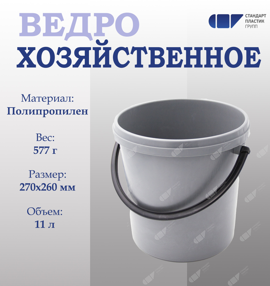 Большое и вместительное ведро подойдет для любых хозяйственных нужд. Ведро из пластика легко содержать в чистоте. Для удобной переноски ведро оснащено ручкой. В состав ведра входит небольшое количество полиэтилена, который придает ведру эластичность и повышенную ударопрочность.