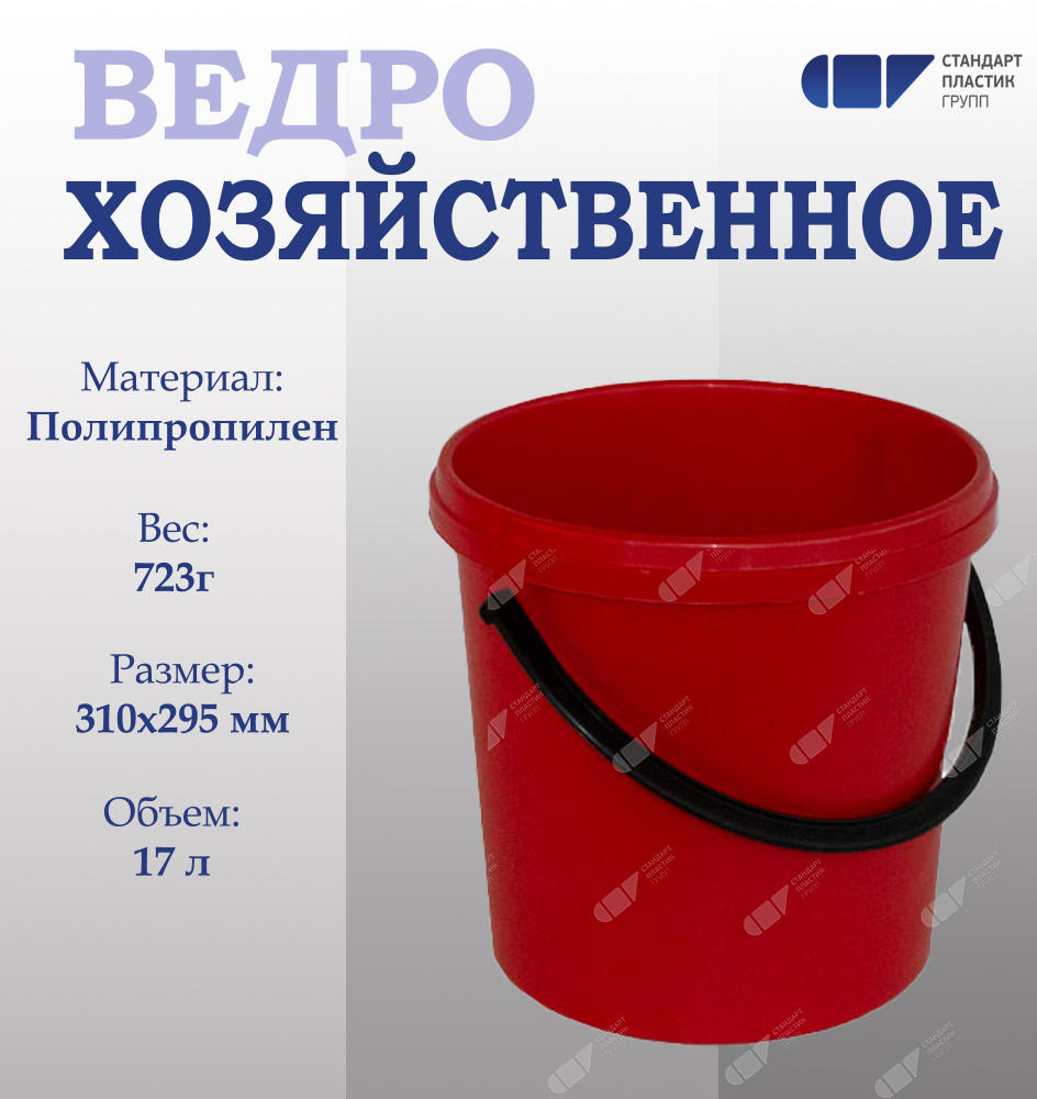Большое и вместительное ведро подойдет для любых хозяйственных нужд. Ведро из пластика легко содержать в чистоте. Для удобной переноски ведро оснащено ручкой. В состав ведра входит небольшое количество полиэтилена, который придает ведру эластичность и повышенную ударопрочность.