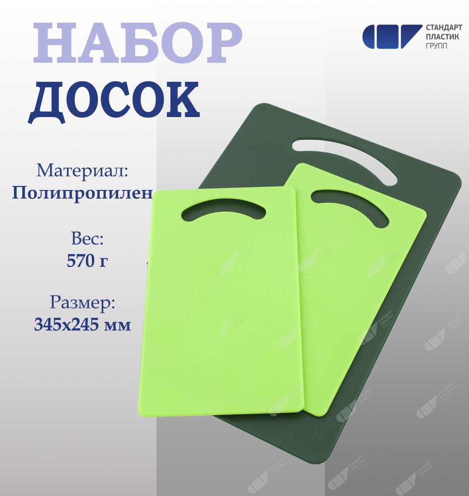 В набор входят : доска разделочная 345х245 мм - 1 шт., доска разделочная 240х145 мм - 2 шт.