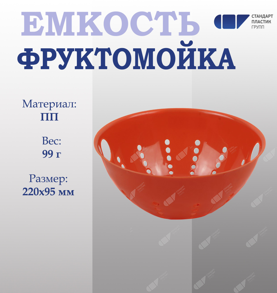 Фруктомойка в форме чаши удобна для промывания небольших фруктов и ягод. Большое количество сливных отверстий на корпусе обеспечивают быстрый слив жидкости. Благодаря яркой расцветки и оригинальному дизайну фруктомойку можно использовать как сервировочную вазу для фруктов.