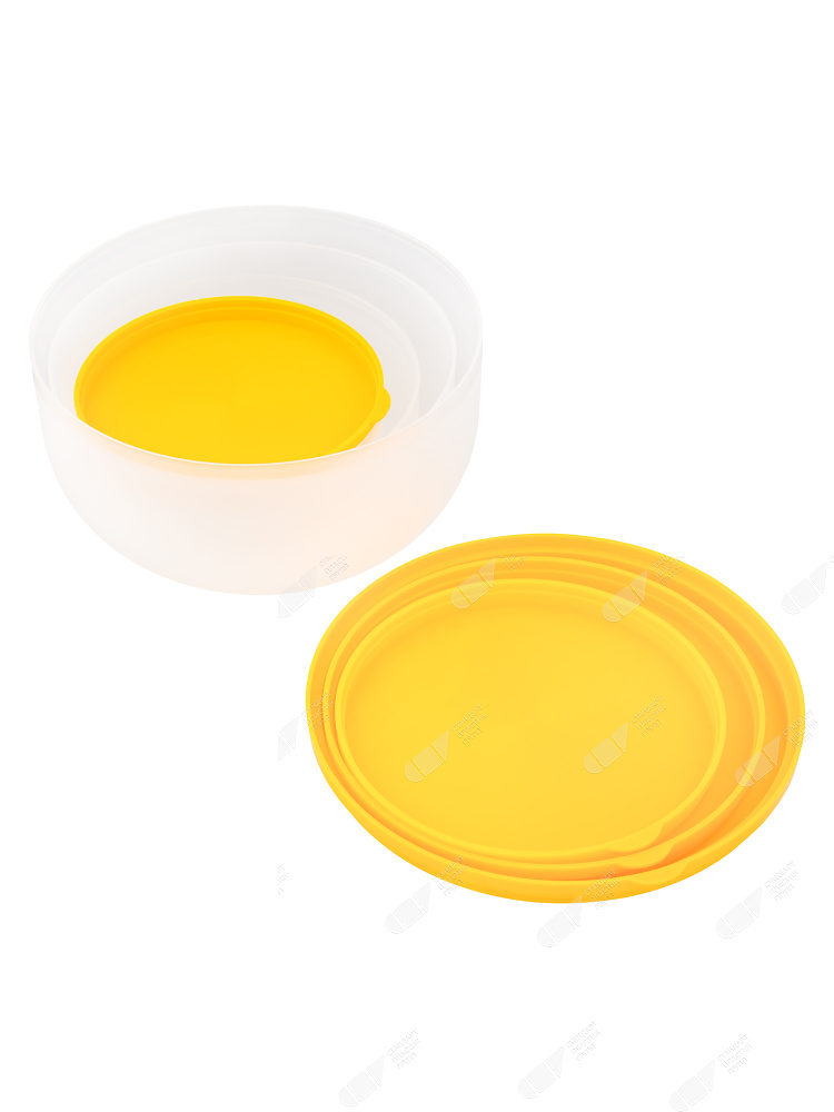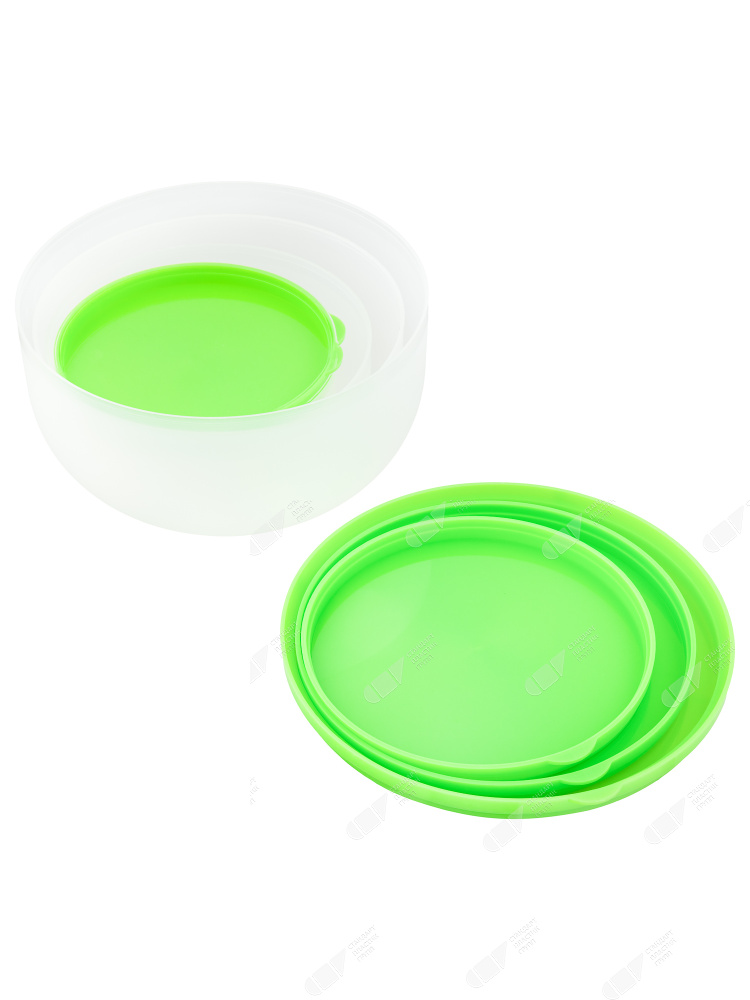 Универсальный набор пластиковых контейнеров круглой формы отлично подойдет для хранения пищи или заготовок в холодильнике и морозильной камере. Благодаря плотно закрывающейся крышке контейнеры удобно брать собой. Они удобные в транспортировке и просты в уходе. Они долго служат, компактно размещаются на открытой полке, в шкафчике или в ящике кухонного гарнитура. Для большего удобства хранения контейнеры компактно складываются друг в друга. Можно использовать при разогреве продуктов в СВЧ.