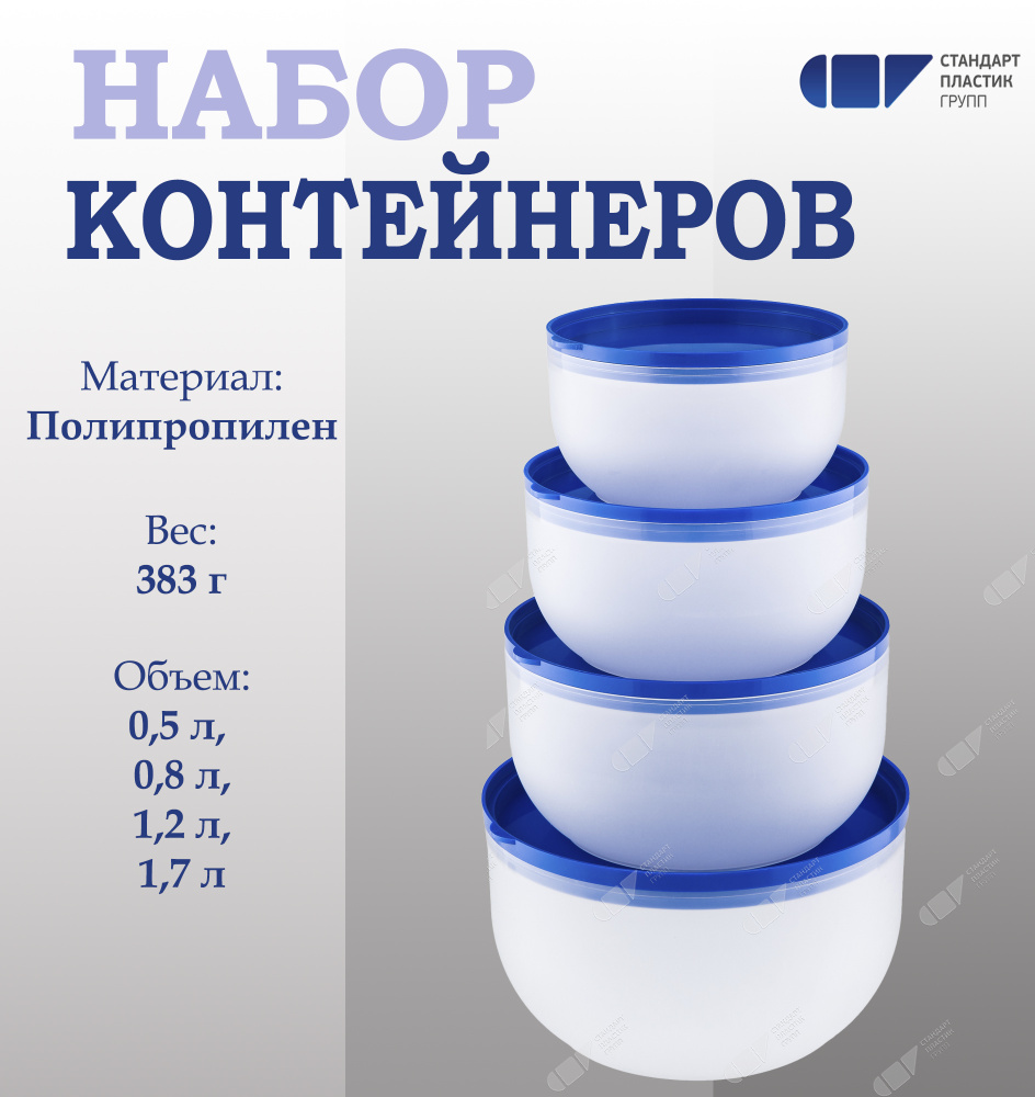 В набор входят контейнеры различных объемов: 0,5л, 0,8л, 1,2л, 1,7л